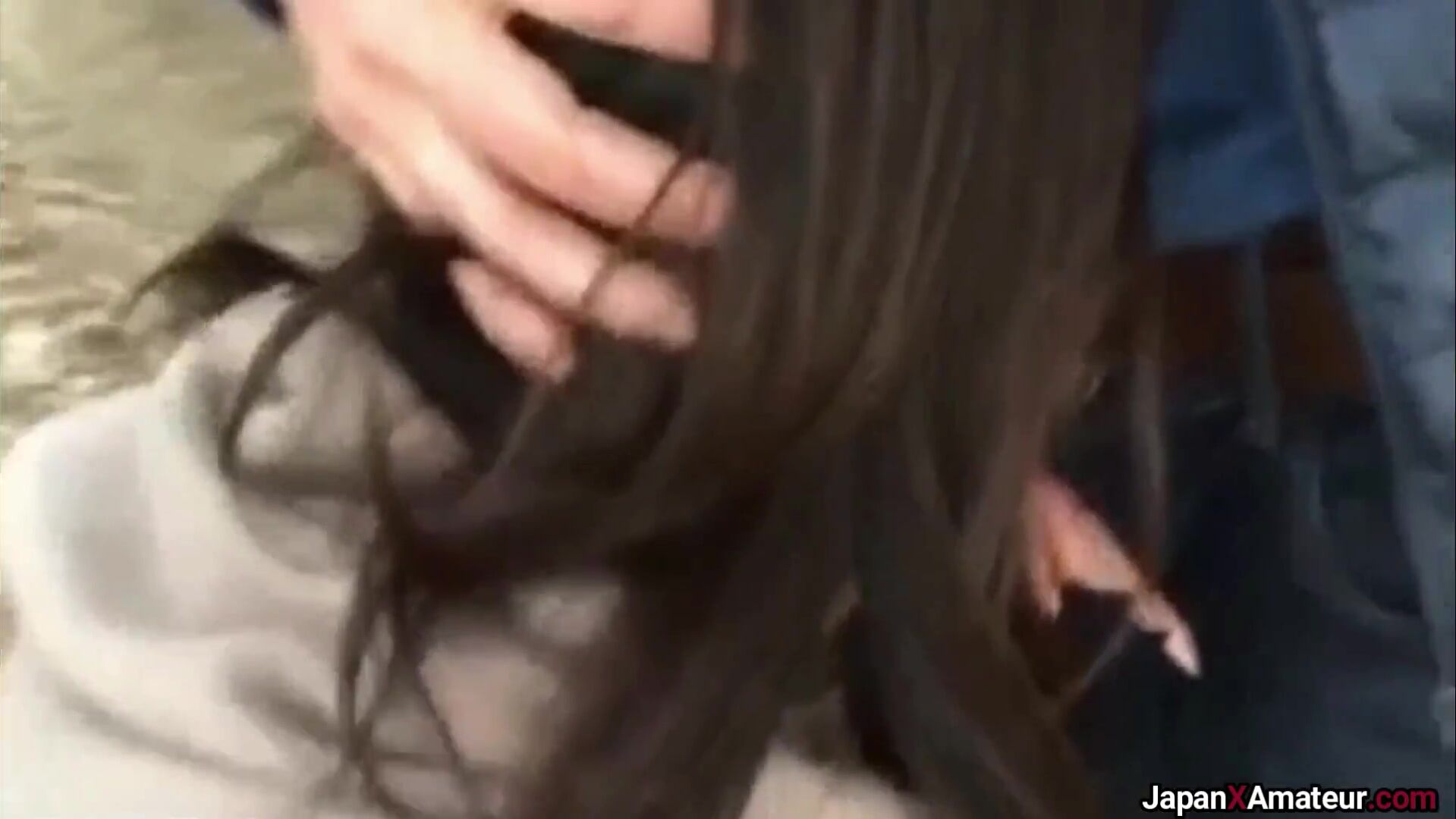 Asian: Amateur Japanese Lady Sucking A White Cock Outdoors | Porn GIF Video