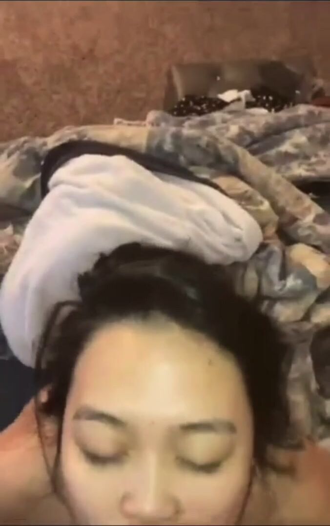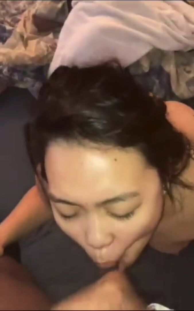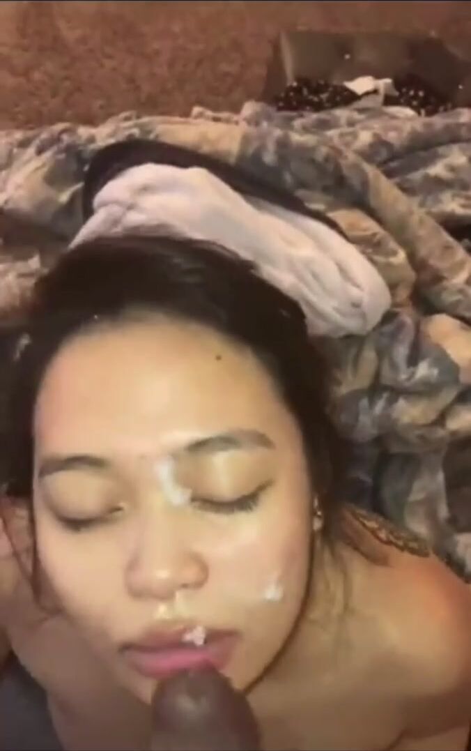 Asian BBC Facials: Asian sucks BBC nuts until he cums on her face | Porn GIF Video