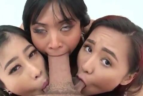Asian: Ellen Vineva, Ember Snow and Jade Kush suck on one lucky dick | Porn GIF Video