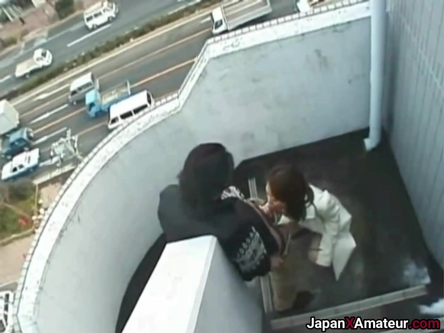 Uncensored Asian: Japanese Girl With A Cute Laugh Giving A Blowjob And Getting Fucked On Apartment Stairs | Porn GIF Video