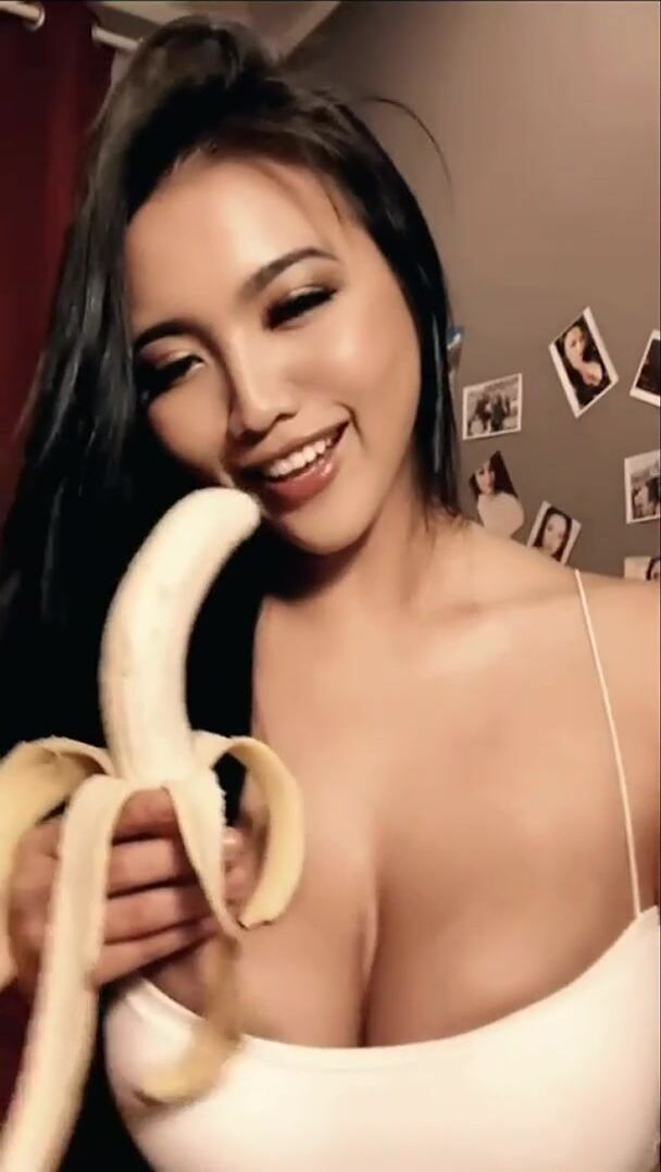 Busty Asians: Practice makes perfect. Guys tell me my blowjobs are bananas ♥️♥️ | Porn GIF Video